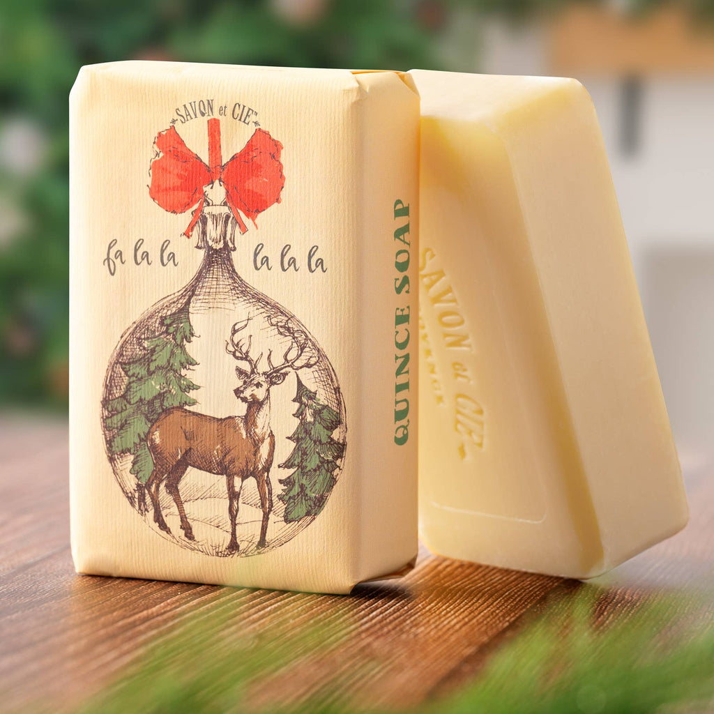 Our holiday designed soaps are seasonally scented to make the perfect stocking stuffers for all ages! Triple milled in France using century old techniques to produce a long-lasting bar with a luxurious rich lather. These natural, plant-based soaps are blended with Organic Shea Butter to cleanse, nourish, and moisturize skin and infused with phthalate-free scents to uplift the senses elevating ones self-care ritual. Cruelty-free and formulated without BHT, Parabens, SLS, Phthalates, BHT or GMOs.